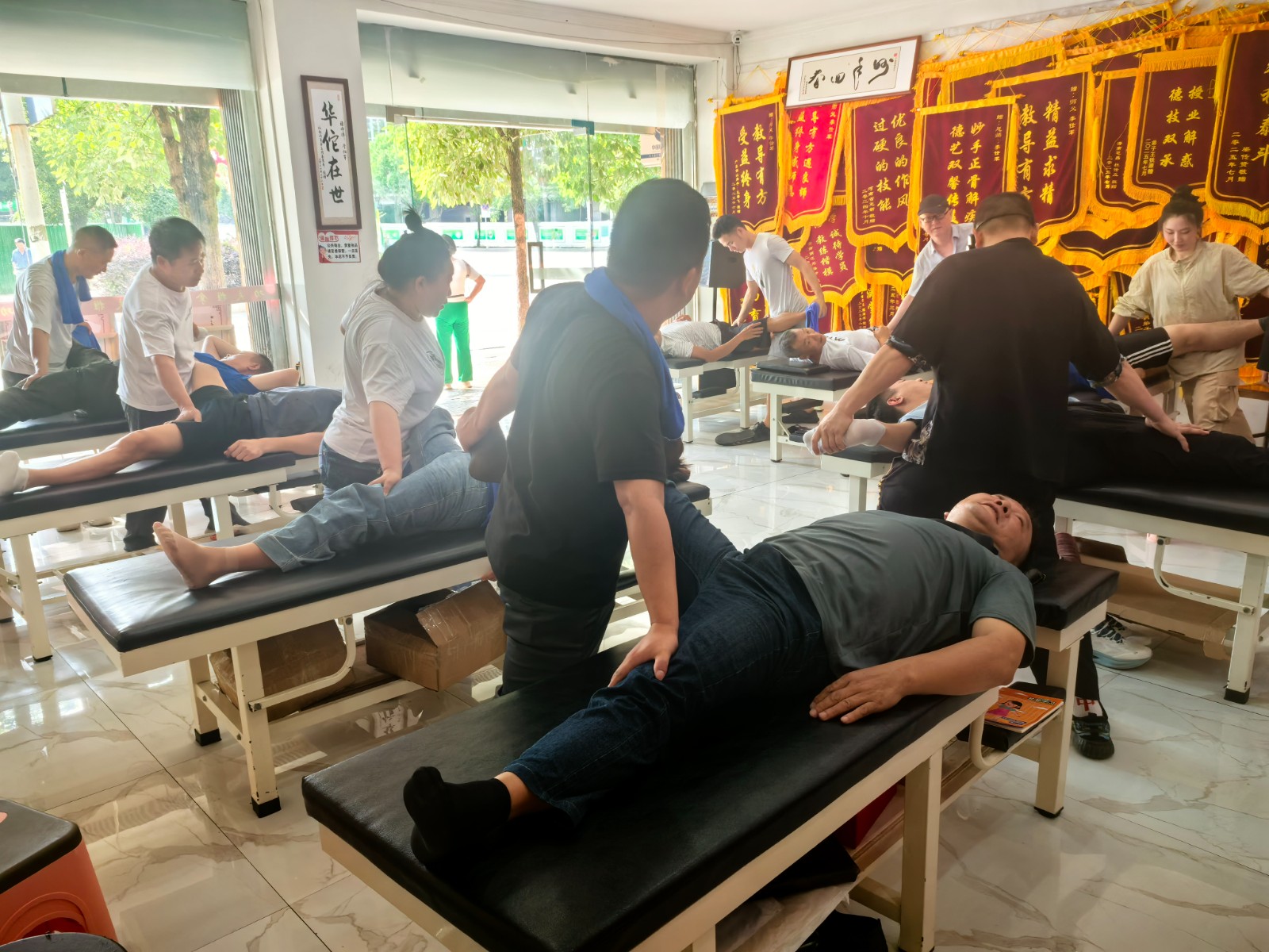 正骨床上,汗水顺着徒弟们的下颌线滴落,砸在裤上晕开深色的印记。有人手肘磨出了红痕,有人掌心的茧子又厚了一层,但没人停下练习的手。因为他们知道,这酸痛里藏着明天的底气——是老家父母期盼的安稳,是孩子书包里的新课本,更是那些被疼痛困住的人眼里的光。